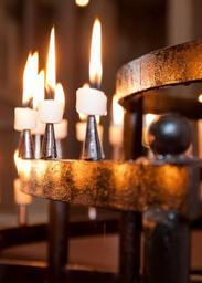 Keywords: church faith jesus priest cross christianity god candles steeple window stained glass prayer glass window lights christian building bell flame religion