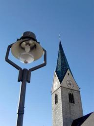 Keywords: church gothic bell tower sky lamp lantern street lamp south tyrol lighting