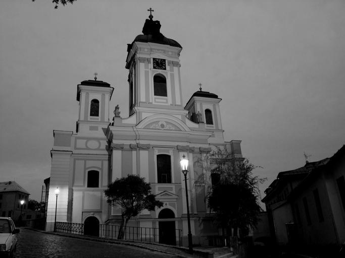 Keywords: church light b w photography dark contrast tree old town slovakia