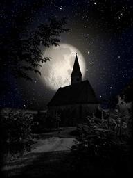 Keywords: church moon night shadow star sky gespenstig atmosphere mountain church black ache gothic celestial body steeple light luna moonlight moonlight serenade mood satellite tower clouds