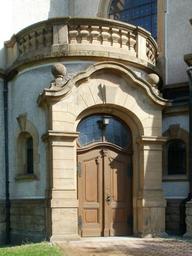 Keywords: church protestant hockenheim entrance door front building religion architecture old tower historic germany christianity faith spiritual exterior worship construction