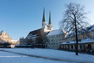 Keywords: church space steeple christianity architecture tower building bavaria tree faith winter snow altötting place of pilgrimage
