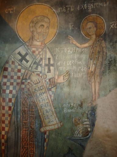 | Keywords: Church of St Demetrius, Boboshevo.6.jpg en Church of St Demetrius Boboshevo bg Видението на Св Петъ Александ ийски - стенопис от с едновекавната манасти ска цъ ква Свети Димитъ до г Бобошево собствено п оизведение LeeKeoma 2010-06-26 Saint Demetrius Church Boboshevo |
