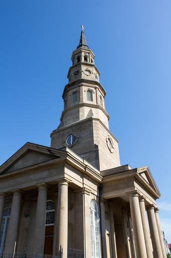 Keywords: church steeple architecture religion landmark tower building sky old christian chapel religious worship christianity blue historic holy town spiritual cross city cityscape faith skyline charleston south carolina