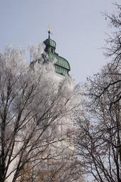 Keywords: church steeple sun sunny hoarfrost winter mood cold frost trees portrait