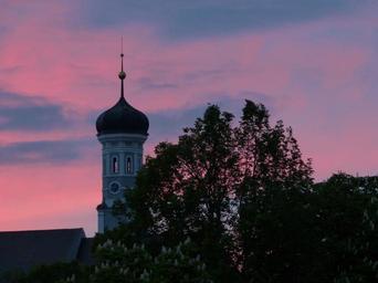 Keywords: church steeple ulm holy trinity church spire onion dome tower turrets onion helm great roof faith christianity building architecture sunset afterglow pastel pastellfarben twilight