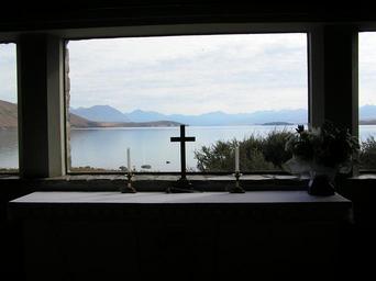 Keywords: church view holiday landscape cross window lake