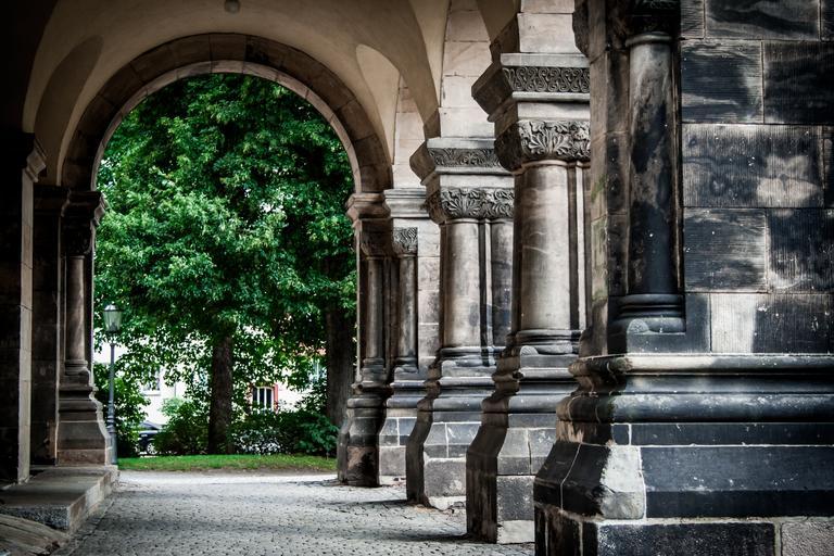 Keywords: church wall passage sand stone old masonry building old town historically architecture stone tourism monastery stone wall gang shadow landscape tree light and shadow light away mood lichtspiel romance religion faith path