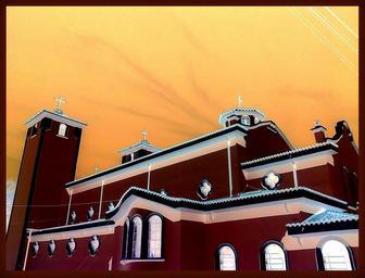 Keywords: church west painting sky silhouettes architecture sunset horizon