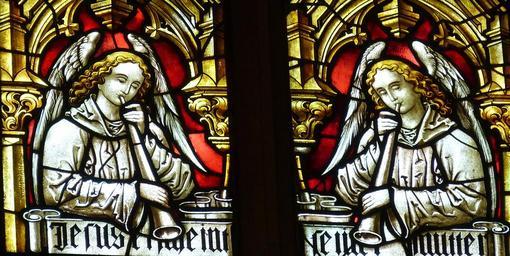 Keywords: church window church window stained glass stained glass window historically image angel music christianity flute instrument faith christian