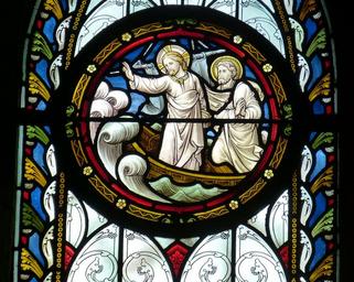 Keywords: church window church window jesus ship boot forward lake stained glass faith image bible christianity historically stained glass window christ jersey united kingdom england st helier