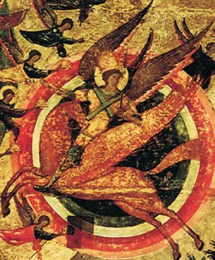 | Keywords: ChurchMilitant (detail 02).jpg en Detail of Blessed is the Host of the King of Heaven alternatively known as Church Militant Russian icon ca 1550 - 1560 Tretyakov Gallery This icon is traditionally perceived as an allegorical representation of the conquest of the Kazan khanate http //www rus-obr ru/idea/4583 Anonymous attributed to Athanasius circa 1550 1560 Museum Tretyakov Gallery credit line 200px PD-Art Blessed is the Host of the King of Heaven Winged horses Icons of Saint Michael horseman Details of 16th-century paintings |