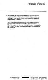 | Keywords: CIA Memo2.jpg Page 2 of 2 from a CIA memo dated August 2001 concerning a possible attack by Bin Laden on the United States of America Original text en wikipedia by en User Andrei Stroe using http //tools wikimedia de/~magnus/commonshelper php CommonsHelper <br/> original text 1 National Security Archives 6 August 2001<br/> first version ; last version Unknown CIA Wiki1609 wikipedia en Later version s were uploaded by Noahcs at http //en wikipedia org en wikipedia Wiki1609 wikipedia en Original text PD-USGOV-CIA <br/> original text 1 Declassified by the US Government on 10 April 2004 60px page 1 of 2 Original upload log en wikisource Billinghurst CommonsHelper en wikisource Memo2 jpg 2006-07-10 01 21 Sherurcij 1120×1859× 161485 bytes <nowiki></nowiki> CIA documents Secrecy Documents of the government of the United States Osama bin Laden PD-USGov |