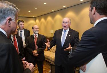 The event, entitled "The President's Daily Brief: Delivering Intelligence to the First Customer," featured CIA Director John O. Brennan as the keynote speaker. Director of National Intelligence James R. Clapper delivered closing remarks. In addition, the event featured a panel discussion and remarks by other leaders from the academic, archivist, and intelligence communities, including William H. McRaven, Chancellor of the University of Texas System, former CIA Director Porter Goss, former CIA Deputy Director Bobby Inman, and others.
