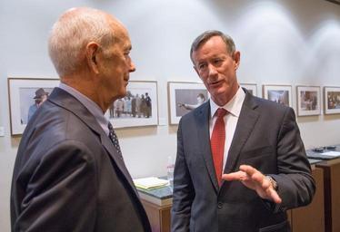 | Keywords: lbj library museum cia austin tx usa john brennan lbj presidential library lbjpresidentiallibrary james clapper william mcraven porter goss admiral bobby inman people [Admiral Bobby Inman and UT Chancellor William McRaven] On Wednesday, Sept. 16, 2015, at a public event at the LBJ Presidential Library, the Central Intelligence Agency released over 2,500 previously classified President's Daily Briefs (PDBs) from the administrations of Presidents Kennedy and Johnson. It was the biggest release of PDBs by the CIA, ever. The event, entitled "The President's Daily Brief: Delivering Intelligence to the First Customer," featured CIA Director John O. Brennan as the keynote speaker. Director of National Intelligence James R. Clapper delivered closing remarks. In addition, the event featured a panel discussion and remarks by other leaders from the academic, archivist, and intelligence communities, including William H. McRaven, Chancellor of the University of Texas System, former CIA Director Porter Goss, former CIA Deputy Director Bobby Inman, and others. LBJ Library photo by Jay Godwin [Admiral Bobby Inman and UT Chancellor William McRaven] On Wednesday, Sept. 16, 2015, at a public event at the LBJ Presidential Library, the Central Intelligence Agency released over 2,500 previously classified President's Daily Briefs (PDBs) from the administrations of Presidents Kennedy and Johnson. It was the biggest release of PDBs by the CIA, ever. The event, entitled "The President's Daily Brief: Delivering Intelligence to the First Customer," featured CIA Director John O. Brennan as the keynote speaker. Director of National Intelligence James R. Clapper delivered closing remarks. In addition, the event featured a panel discussion and remarks by other leaders from the academic, archivist, and intelligence communities, including William H. McRaven, Chancellor of the University of Texas System, former CIA Director Porter Goss, former CIA Deputy Director Bobby Inman, and others. LBJ Library photo by Jay Godwin [Admiral Bobby Inman and UT Chancellor William McRaven]