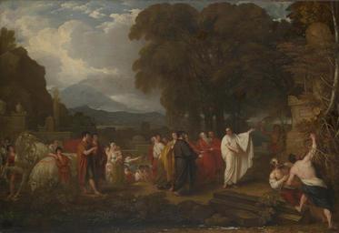 | Keywords: Cicero Discovering the Tomb of Archimedes by Benjamin West.jpeg Artwork en Cicero Discovering the Tomb of Archimedes 1804 oil canvas in 49 5 71 75 Institution Yale University Art Gallery accession number object history credit line http //ecatalogue art yale edu/detail htm objectId 53032 PD-old-100 1804 oil on canvas paintings in the United States Ancient history and myths paintings by Benjamin West Paintings by Benjamin West in the Yale University Art Gallery Cicero discovering the Tomb of Archimedes |