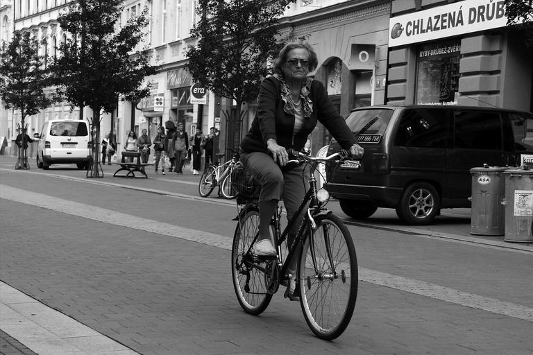 MAKE A MEME View Large Image ciclista black and white mrs round ride road street českě české budějovice cable street woman stone face