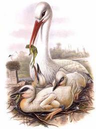 Keywords: Ciconia ciconia Gould.jpg White Stork Cigogne blanche http //www oiseaux net/photos/john gould/cigogne blanche 0 html monde Scan on Oiseaux net Creator John Gould PD-old-100 Ciconia ciconia nests with chicks Ciconia ciconia in art