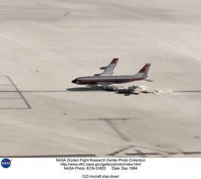 | Keywords: CID Aircraft slap-down DVIDS706296.jpg en In this photograph the B-720 is seen during the moments of initial impact The left wing is digging into the lakebed while the aircraft continues sliding towards wing openers In 1984 NASA Dryden Flight Research Facility and the Federal Aviation Administration FAA teamed-up in a unique flight experiment called the Controlled Impact Demonstration CID The test involved crashing a Boeing 720 aircraft with four JT3C-7 engines burning a mixture of standard fuel with an additive Anti-misting Kerosene AMK designed to supress fire In a typical aircraft crash fuel spilled from ruptured fuel tanks forms a fine mist that can be ignited by a number of sources at the crash site In 1984 the NASA Dryden Flight Research Facility after 1994 a full-fledged Center again and the Federal Aviation Administration FAA teamed-up in a unique flight experiment called the Controlled Impact Demonstration CID to test crash a Boeing 720 aircraft using standard fuel with an additive designed to supress fire The additive FM-9 a high-molecular-weight long-chain polymer when blended with Jet-A fuel had demonstrated the capability to inhibit ignition and flame propagation of the released fuel in simulated crash tests This anti-misting kerosene AMK cannot be introduced directly into a gas turbine engine due to several possible problems such as clogging of filters The AMK must be restored to almost Jet-A before being introduced into the engine for burning This restoration is called degradation and was accomplished on the B-720 using a device called a degrader Each of the four Pratt Whitney JT3C-7 engines had a degrader built and installed by General Electric GE to break down and return the AMK to near Jet-A quality In addition to the AMK research the NASA Langley Research Center was involved in a structural loads measurement experiment which included having instrumented dummies filling the seats in the passenger compartment Before the final flight on December 1 1984 more than four years of effort passed trying to set-up final impact conditions considered survivable by the FAA During those years while 14 flights with crews were flown the following major efforts were underway NASA Dryden developed the remote piloting techniques necessary for the B-720 to fly as a drone aircraft; General Electric installed and tested four degraders one on each engine ; and the FAA refined AMK blending testing and fueling a full-size aircraft The 15 flights had 15 takeoffs 14 landings and a larger number of approaches to about 150 feet above the prepared crash site under remote control These flight were used to introduce AMK one step at a time into some of the fuel tanks and engines while monitoring the performance of the engines On the final flight No 15 with no crew all fuel tanks were filled with a total of 76 000 pounds of AMK and the remotely-piloted aircraft landed on Rogers Dry Lakebed in an area prepared with posts to test the effectiveness of the AMK in a controlled impact The CID which some wags called the Crash in the Desert was spectacular with a large fireball enveloping and burning the B-720 aircraft From the standpoint of AMK the test was a major set-back but for NASA Langley the data collected on crashworthiness was deemed successful and just as important NASA Identifier NIX-ECN-31803 2009-09-23 Glenn Research Center https //www dvidshub net/image/706296 706296 2012-10-10 15 57 WASHINGTON DC US PD-USGov Controlled Impact Demonstration Images from DoD uploaded by Fæ |