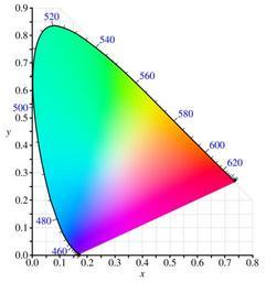 | Keywords: CIE1931xy blank.svg CIE 1931 xy color space diagram Drawn or rather programmatically generated from scratch but the visual design is based on File CIExy1931 png by w User PAR Major differences Colors outside the sRGB triangle are clipped toward the sRGB white point so they have more accurate hues The original image and most other images of this type clips each sRGB channel independently to zero which among other things leads to the whole top of the diagram being colored 00FF00 sRGB primary green when it should be more of a cyan Luminance inside the triangle was reduced somewhat Maximum luminance the infinity norm creates a three-pointed star artifact the lines are FFFF00 FF00FF and 00FFFF Constant luminance 1-norm looks rather dull An intermediate p-norm makes nice-looking results without the star This background image uses p 5 if I remember right Gone with the star is the clearly defined white of the D65 white point which is also an sRGB artifact Blurring of the sRGB triangle edges to hide artifacts there This means the colors near the boundary are slightly less accurate not maximally saturated I prefer this to the line artifacts but it's an issue that could be debated Labels at uniform 20nm intervals; left out 380nm and 700nm because the locus doesn't really stop there or anywhere it just fades into nothingness; no grid on the x + y > 1 region; random tweaks yada yada yada File CIExy1931 svg 2009-09-24 BenRG Public domain CIE1931xy ColorChecker svg CIE1931xyY Blank-fr svg CIE 1931 |