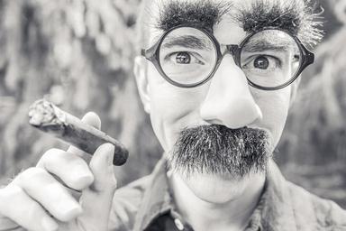 Keywords: cigar smoking cigar cigarette smoking man male black and white funny mask mustache moustache walrus mustache eyebrows face content guy hair glasses eyes nose hands people