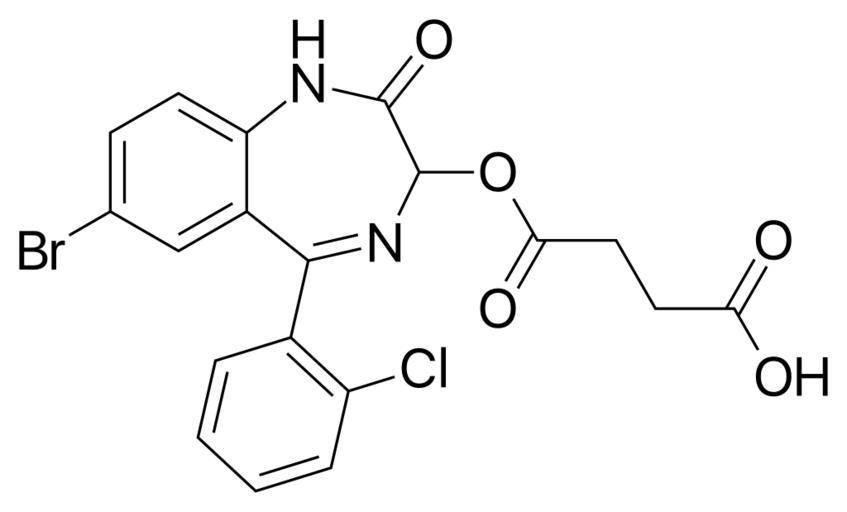 Keywords: Cinazepam.svg Skeletal formula of w cinazepam also known as BD-798 ”a benzodiazepine derivative https //pubchem ncbi nlm nih gov/compound/629281 PubChem 13 34 21 November 2014 UTC Ed Edgar181 valid svg pd-chem 1 4-Benzodiazepines Carboxylic acids Epsilon-lactams Carboxylate esters Monochlorobenzenes