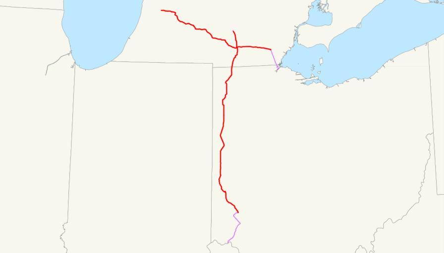 | Keywords: Cincinnati, Jackson and Mackinaw Railway system map (1897).svg This is a map of the Cincinnati Jackson and Mackinaw Railway as of 1897 with trackage rights in purple Email me if you would like a copy of the GIS data I created modified from Bureau of Transportation Statistics North American Transportation Atlas Data or if you see any errors 2008-11-04 own assumed NE2 System maps of defunct U S railroads Cincinnati Northern Railroad 1894-1938 | ||||