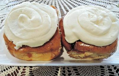 Keywords: cinnamon bun cream cheese topping yeast bread sweet food