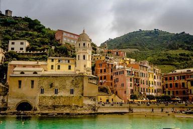 Keywords: cinque terre italy beach amalfi coast buildings scenic shoreline coastline ocean seaside church