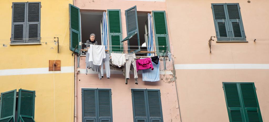 Keywords: cinque terre italy clothesline person peopl woman female white lifestyle europe liguria italian tourism village colorful picturesque scenic architecture