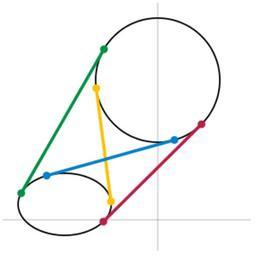 | Keywords: Circle ellipse tangents.png Show four mututal tangents to circle and ellipse for response to Wikipedia mathematics reference desk question posted by Bmk on 20 04 11 July 2006 UTC 2006-07-12 own assumed KSmrq~commonswiki Geometric shapes Circles with tangent Ellipses |
