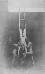| Keywords: Circle of Thomas Eakins - Male Students Posing at the Art Students' League of Phildelphia.jpg information CIRCLE OF THOMAS EAKINS 1844-1916 Male Students Posing at the Art Students' League of Phildelphia Three figures posing with ladder Albumen print 1886 7 3/8 x 4½in 18 8 x 11 5cm Provenance Charles Grafly Jr ; by descent to Dorothy Grafly Drummond; to Charles Drummond; to the present owner 1981 1981 creator Thomas Eakins PD-old-100 Photographs of nude males by Thomas Eakins | ||||
