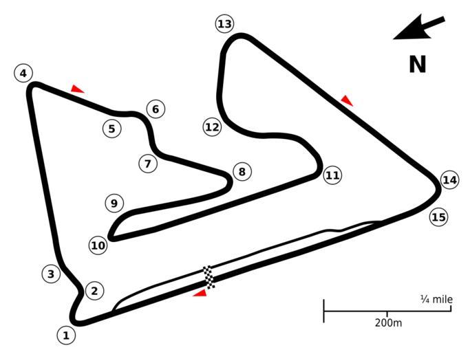 | Keywords: Circuit Bahrain 2004.svg en Circuit map of the Bahrain International Circuit Bahrain showing the Grand Prix layout 2004-present excluding 2010 2012-10-06 21 15 34 own AlexJ cc-zero Uploaded with UploadWizard Bahrain International Circuit circuit maps |