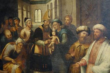 | Keywords: Circumcision and Birth of John the Baptist with Annunciation to Zechariah, by Teramo Piaggio, 1535, view 2, oil on wood - Museo Diocesano (Genoa) - DSC01539.JPG view 2<br /> detail title Circumcision and Birth of John the Baptist with Annunciation to Zechariah 1535 own Daderot 2013-09-25 09 50 27 Teramo Piaggio oil on wood Museo Diocesano Genoa All artwork in this museum is old enough so that it is in the public domain Photography was permitted in the museum without restriction cc-zero Uploaded with UploadWizard Circumcision and Birth of John the Baptist with Annunciation to Zechariah by Teramo Piaggio |