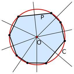 | Keywords: Circumscribed Polygon.svg Diagram to show the construction of the circumcentre O and circumcircle C red of a polygon P black showing perpendicular bisectors of each edge of the polygon Own drawing Inkscape 0 45 07/05/2007 Inductiveload Circumcircles |