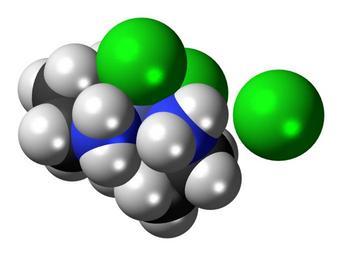 | Keywords: Cis-Dichlorobis(ethylenediamine)cobalt(III) chloride 3D spacefill.png Space-filling model of the cis-dichlorobis ethylenediamine cobalt III complex This image shows the Λ lambda isomer as a chloride salt Colour code 505050 Carbon C black<br> F0F0F0 Hydrogen H white<br> 3C50FA Nitrogen N blue<br> 14F014 Chlorine Cl green<br> 7078C0 Cobalt Co grey-blue<br> 2011-06-15 own DS Visualizer Jynto talk Cationic form ball-and-stick version Cationic form space-filling version Chloride salt ball-and-stick version cc-zero cobalt complexes ethylenediamino complexes chloro complexes Images by Jynto Space-filling models |
