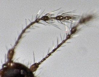 | Keywords: Cissidium foveolatum antennae.jpg en antennae of adult female Cissidium foveolatum photo taken by me S E Thorpe 2010-08-22 NEW ZEALAND WO btwn Hamilton Raglan<br /> NZ 37 8˚S 175 09˚E Dump<br /> F A; P C 27 29ha W281-001<br /> 33 cm diam litter 72hr Berlese<br /> Edge dist 8 3m -6 1m offset <br /> RK Didham 04-Feb-08 Cissidium Coleoptera antennae |