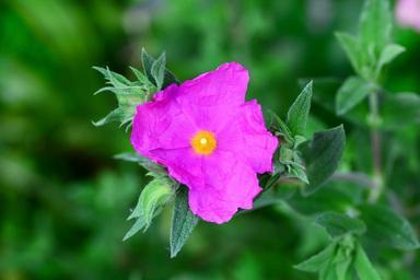 Keywords: cistus perennial shrub cerise pink tissue-thin petal flower bush hot spontaneous combustion plant close-up detail