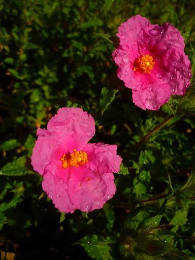 Keywords: cistus white flowers rosa green spring wet rain cistus albidus steppes nature wild field shrub mediterranean forest