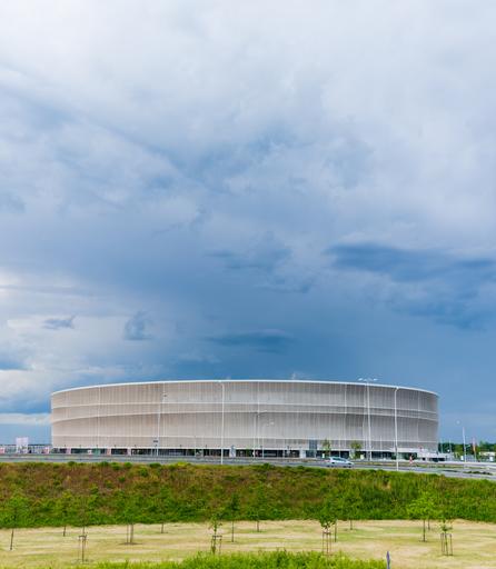 Keywords: city architecture europe travel landmark stadium blue building sky european tourism public lights landscape traffic wrocław wroclaw poland polska sport euro