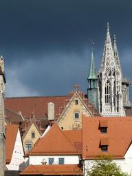 Keywords: city building roofs roof architecture old town structures gable window tower clouds thunderstorm ulm