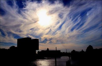 Keywords: city city view back light silhouette dramatic sky in the lens dramatic clouds düsseldorf atmosphere sky abendstimmung panorama clouds nature beautiful cloud formation sun sunlight sunbeam blue waters mood rhine rhine river germany