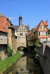 Keywords: city cityscape malerwinkel water river water running building tower truss fachwerkhaus city gate