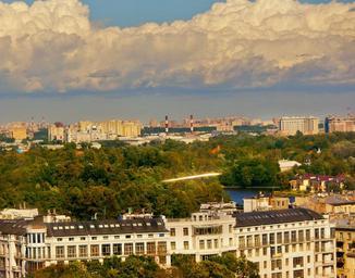Keywords: city day architecture roof summer trees st petersburg russia skyscraper building brick blue wall clouds glass