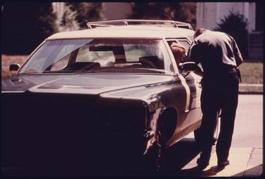 | Keywords: CITY EMPLOYEE HIRED BY THE NORWOOD, OHIO, PUBLIC WORKS DEPARTMENT, GREETS A MOTORIST READY TO ENTER THE SAFETY LANE... - NARA - 557841.jpg Scope and content CITY EMPLOYEE HIRED BY THE NORWOOD OHIO PUBLIC WORKS DEPARTMENT GREETS A MOTORIST READY TO ENTER THE SAFETY LANE AT THE AUTO EMISSION INSPECTION STATION ALL LIGHT DUTY SPARK IGNITION POWERED MOTOR VEHICLES IN THE CITY MUST BE CERTIFIED ANNUALLY SIGNS AROUND THE TESTING LANE DIRECT TRAFFIC ON BUSY DAYS WHEN VEHICLES ARE BACKED UP THREE BLOCKS WITH FRUSTRATED DRIVERS SUMMER BUSINESS DROPPED OFF; AN AVERAGE OF 80 TO 100 VEHICLES WERE CHECKED DAILY IN AUGUST FOR CARBON MONOXIDE AND HYDROCARBON EMISSIONS General notes 557841 Local identifier 412-DA-15391 Environmental Protection Agency 12/02/1970 - NARA-Author Eiler Lyntha Scott 1946- Photographer 1497341 <br /> Norwood Hamilton Ohio United States North and Central America inhabited place 3370006 39 15 -84 45 <br /> Still Picture Records Section Special Media Archives Services Division NWCS-S National Archives at College Park 8601 Adelphi Road College Park MD 20740-6001 08/1975 Record group Record Group 412 Records of the Environmental Protection Agency 1944 - 2006 Record group ARC 708 DOCUMERICA The Environmental Protection Agency's Program to Photographically Document Subjects of Environmental Concern compiled 1972 - 1977 Series ARC 542493 File unit File unit ARC Variant control numbers Agency-Assigned Identifier 257/31/015391<br /> NAIL Control Number NWDNS-412-DA-15391 Other versions <gallery> File CITY_EMPLOYEE_HIRED_BY_THE_NORWOOD _OHIO _PUBLIC_WORKS_DEPARTMENT _GREETS_A_MOTORIST_READY_TO_ENTER_THE_SAFETY_LANE _-_NARA_-_557841 tif tif File CITY_EMPLOYEE_HIRED_BY_THE_NORWOOD _OHIO _PUBLIC_WORKS_DEPARTMENT _GREETS_A_MOTORIST_READY_TO_ENTER_THE_SAFETY_LANE _-_NARA_-_557841 jpg jpg </gallery> NARA-cooperation PD-USGov Automobile emission inspection station at Norwood Ohio Automobile testing Buick Electra Estate 1975 in Ohio |