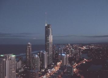 Keywords: city lights city nightlife urban dark illuminated skyline dusk cityscape evening traffic downtown skyscrapers high rises tower grunge night view buildings towers architecture lights rooftops moon