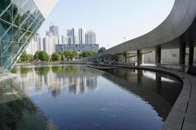 Keywords: city mirror reflection building water pond