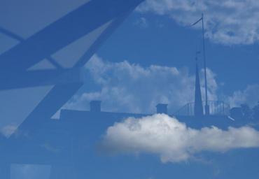 Keywords: city mirroring himmel cloud uppsala bus shelter summer sweden blue sky blue