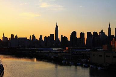 Keywords: city new york skyscraper building sunset evening river skyline view