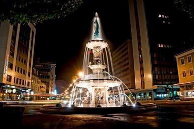 Keywords: city night evening fountain building lights lighting monument water structure outside beautiful